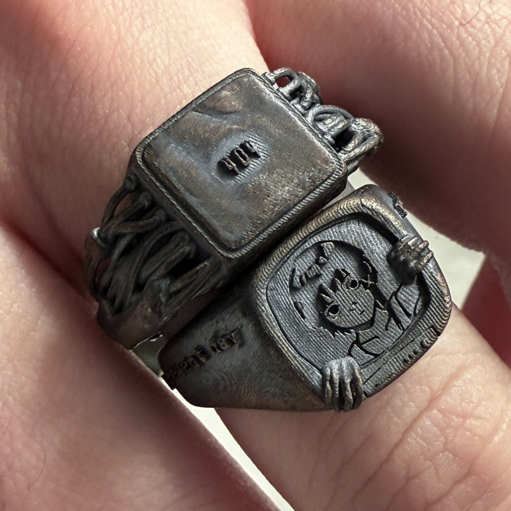 Product details will vary slightly between each product as they are casted and finished by hand. Silver mark/size stamp and and placement prone to redesigns between iterations. The strength of the lines on the screen's face will vary depending on casting position and the necessary process to bring out the details.